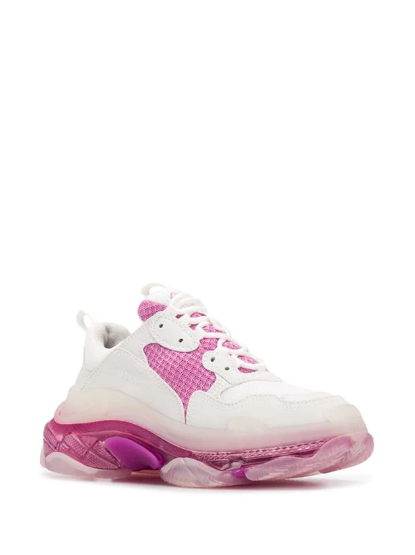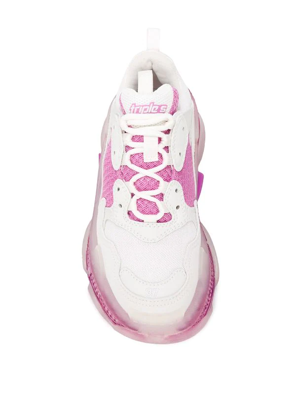 Baskets Triple S Balenciaga avec bout rond, fermeture à lacer sur le devant, languette arrière et empiècements contrastants.