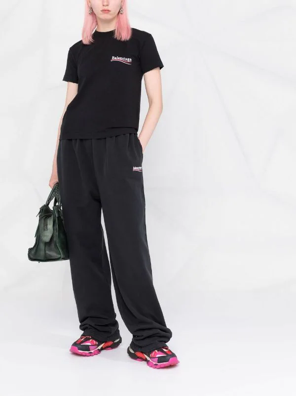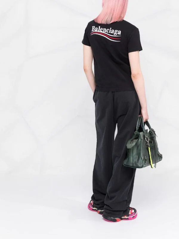 Logo imprimé à la poitrine, logo imprimé à l’arrière, encolure ronde, manches courtes, ourlet droit. Matière : coton.