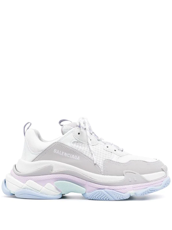 Baskets Triple S Balenciaga avec empiècements en résille, logo imprimé, fermeture à lacer sur le devant, languettes sur les côtés et talon épais. Couleur : Multicolore.