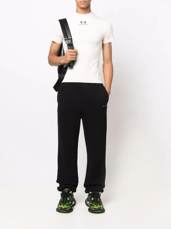 Confectionné à partir de coton doux extensible dans une teinte blanc craie, ce t-shirt à col rond de Balenciaga arbore un logo imprimé à l’avant en noir contrastant.