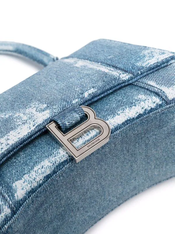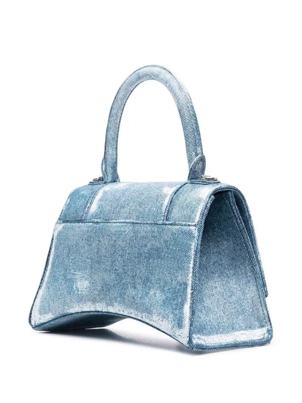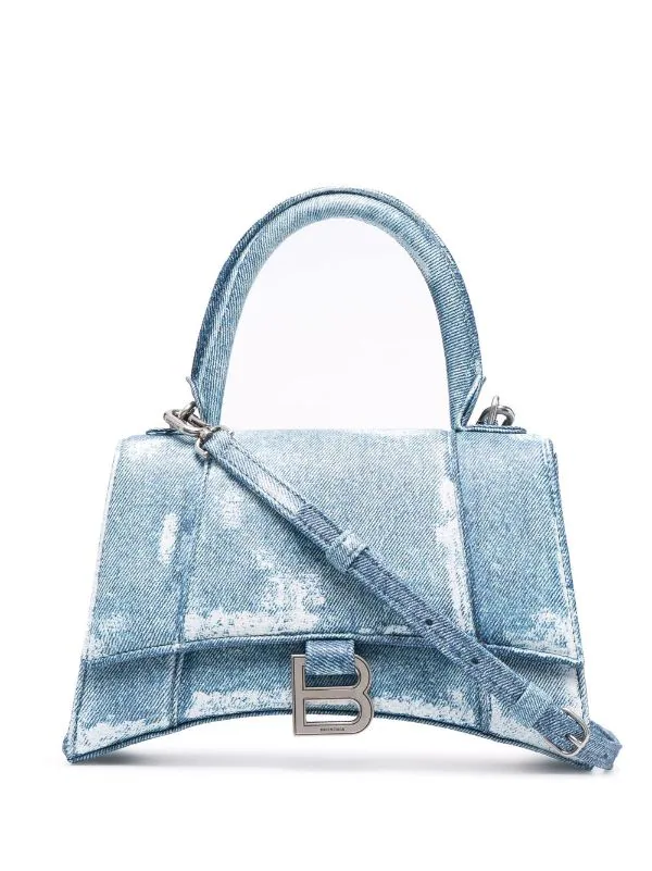 Le sac cabas Hourglass signature de Balenciaga est présenté dans un imprimé bleu jean avec une finition à effet usé. Confectionné en Italie, son design sculpté est réalisée en cuir et arbore une ferrure argentée à l’image du logo de la marque.
