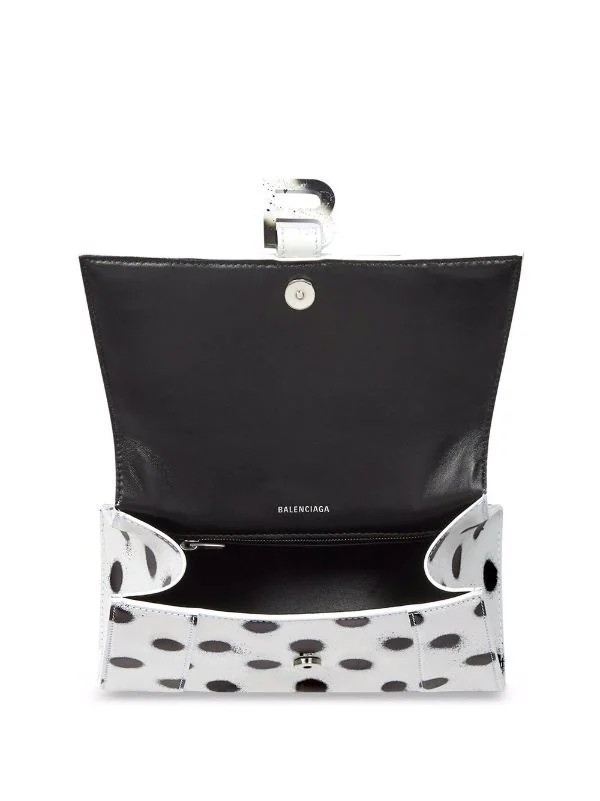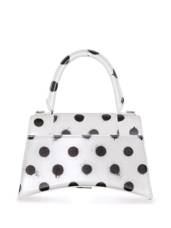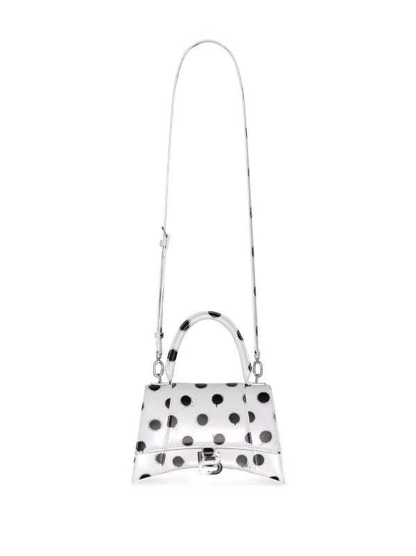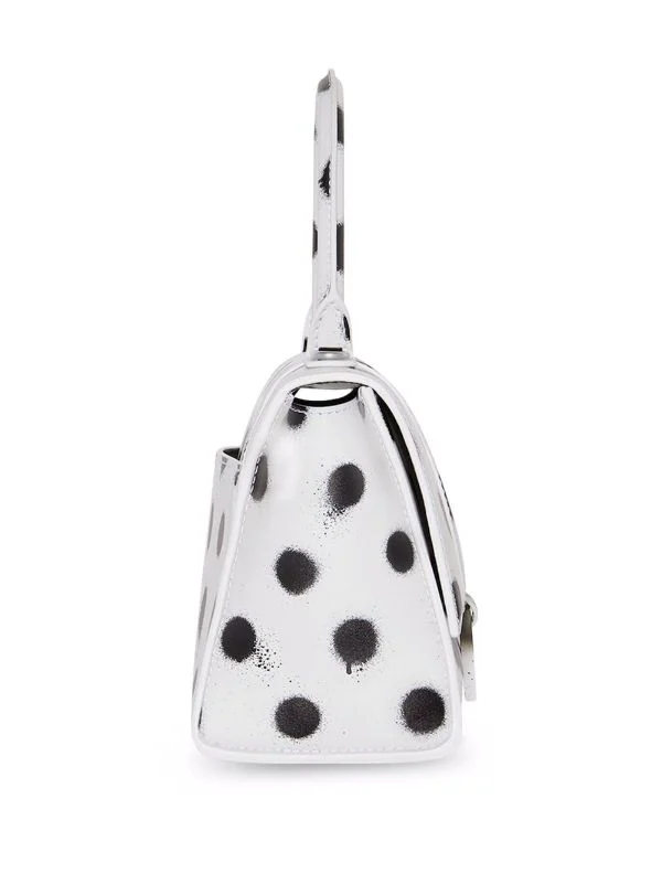 Imprimé à pois, plaque logo, anse arrondie, bride porté épaule détachable et ajustable, rabat sur le devant, fermeture magnétique, compartiment principal, poches intérieures zippées. Matière : cuir.