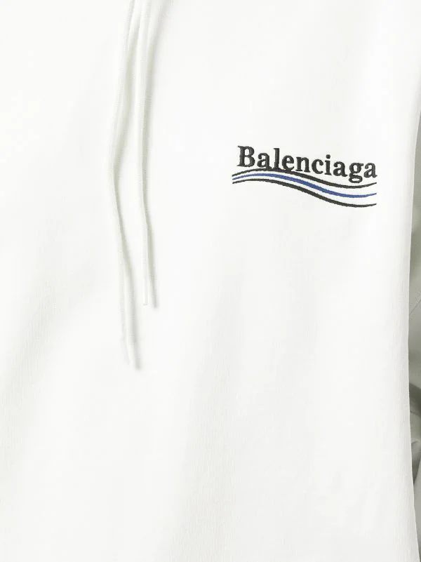 Blanc, coton, logo imprimé à la poitrine, capuche classique, effet d’épaules descendues, manches longues, ourlet élastiqué.
