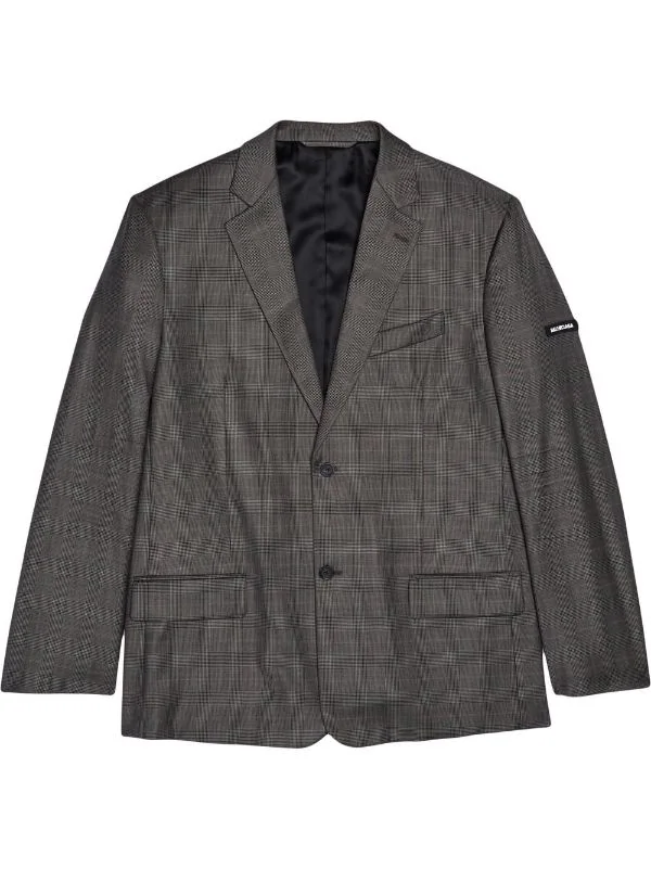 Patch logo sur la manche, carreaux Prince de Galles, revers crantés, boutonnière sur le devant, poche passepoilée, deux poches latérales à rabat, ourlet droit. Couleur : gris. Matière : laine.