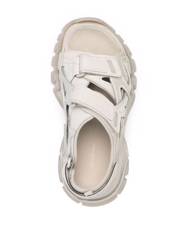 Bout ouvert, fermeture scratch sur le devant, semelle intérieure à logo, patch logo sur l’arrière, languette d’enfilage au talon, semelle crantée en caoutchouc. Matière : cuir.