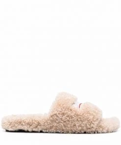 Bout ouvert, logo brodé sur le devant, design à enfiler, semelle plate en caoutchouc.