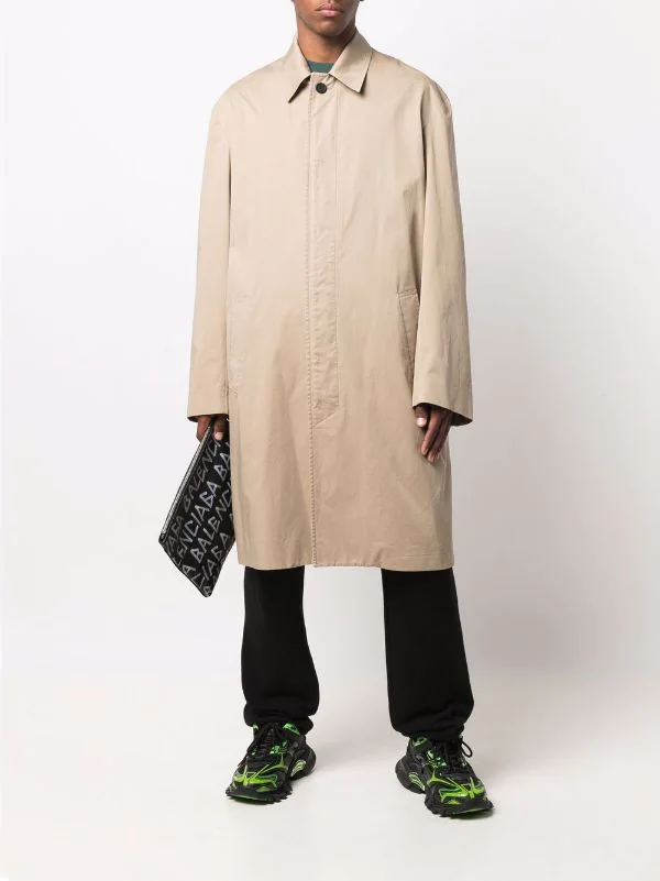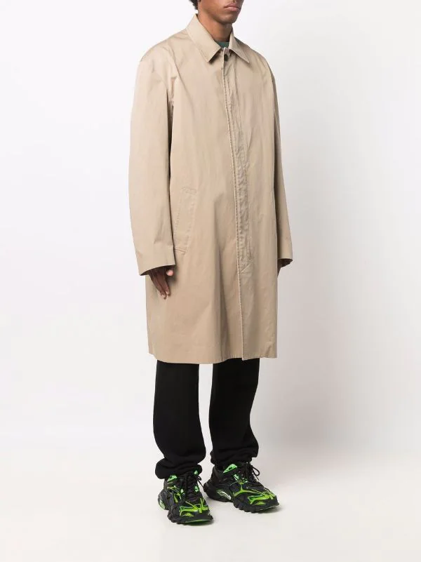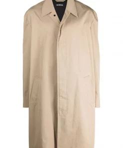 Logo brodé sur le col, col pointu, boutonnière dissimulée sur le devant, manches longues, deux poches latérales fendues. Matière : coton.