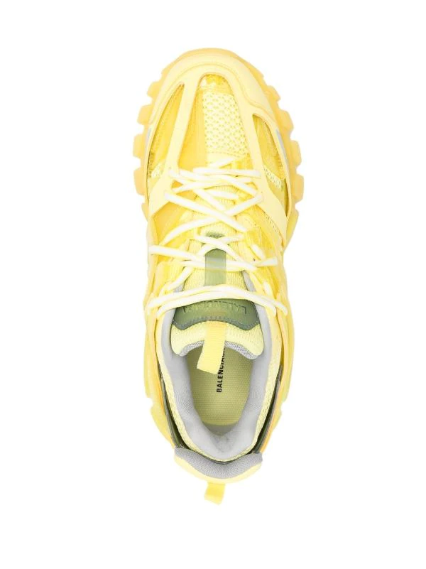 Design à empiècements, logo imprimé sur le devant, languette à patch logo, fermeture à lacer sur le devant, languette d’enfilage au talon, semelle épaisse en caoutchouc. Couleur : jaune.