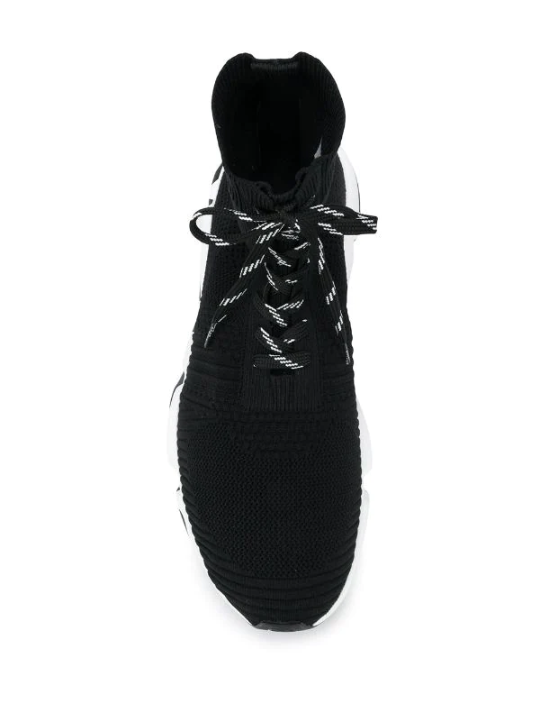 Fermeture à lacer sur le devant, cheville style chaussette, semelle épaisse en caoutchouc, logo imprimé sur le côté.