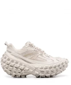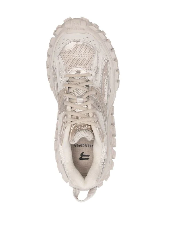 Beige, finitions à effet usé, semelle épaisse en caoutchouc, bout rond, logo embossé sur le devant, fermeture à lacer sur le devant, languette à patch logo, semelle intérieure à logo, chevilles rembourrées, languette d’enfilage au talon, empiècement en mesh.