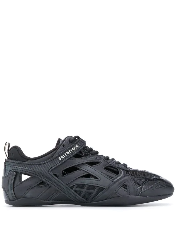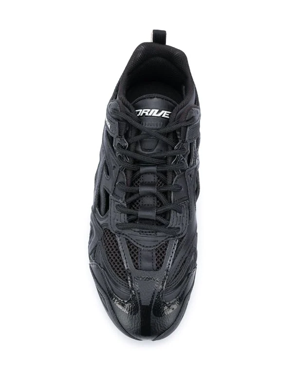 Design à empiècements, fermeture à lacer sur le devant, bout en amande, languette à logo embossé, semelle plate en caoutchouc, languette d’enfilage au talon. Couleur : noir. Matière : tissu.