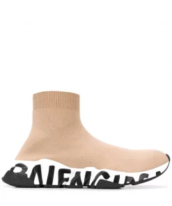 Bout rond, design à enfiler, empiècement en mesh, semelle épaisse en caoutchouc, logo imprimé sur le côté.