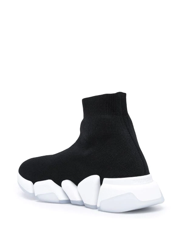 Logo imprimé sur le côté, bout rond, design tricoté, cheville style chaussette, semelle plate en caoutchouc. Couleur : noir.