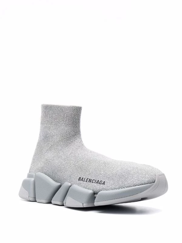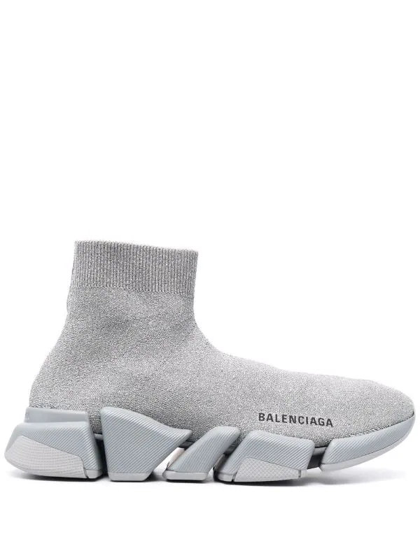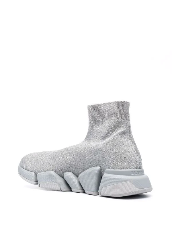Design tricoté, logo imprimé sur le côté, construction stretch, bout en amande, semelle épaisse en caoutchouc. Couleur : gris.