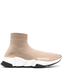 Design à enfiler, cheville style chaussette, logo imprimé sur le côté, bout rond, semelle épaisse en caoutchouc.
