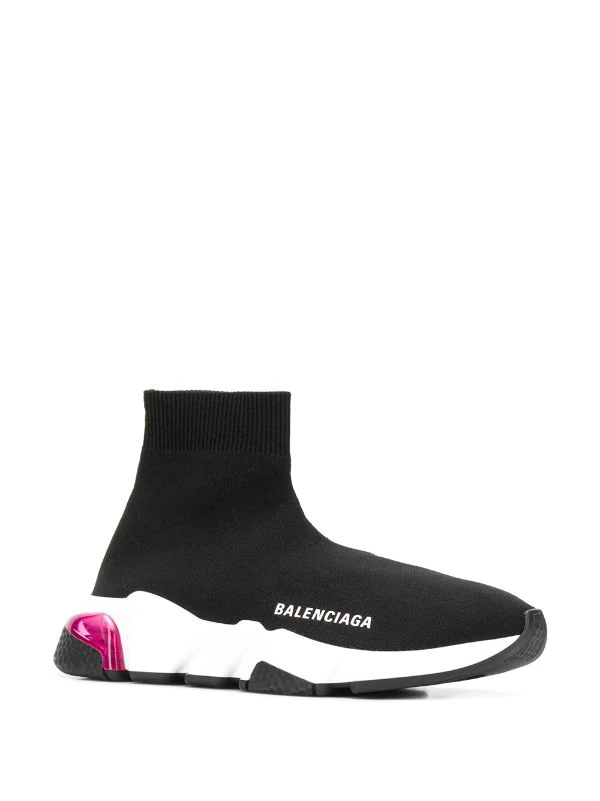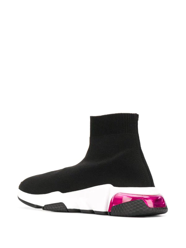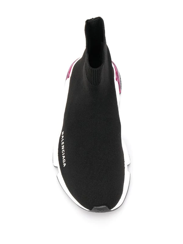 Baskets Speed LT à semelle transparente en caoutchouc Balenciaga avec socquette, bout en amande, logo imprimé et semelle à plateforme. Couleur : noir.