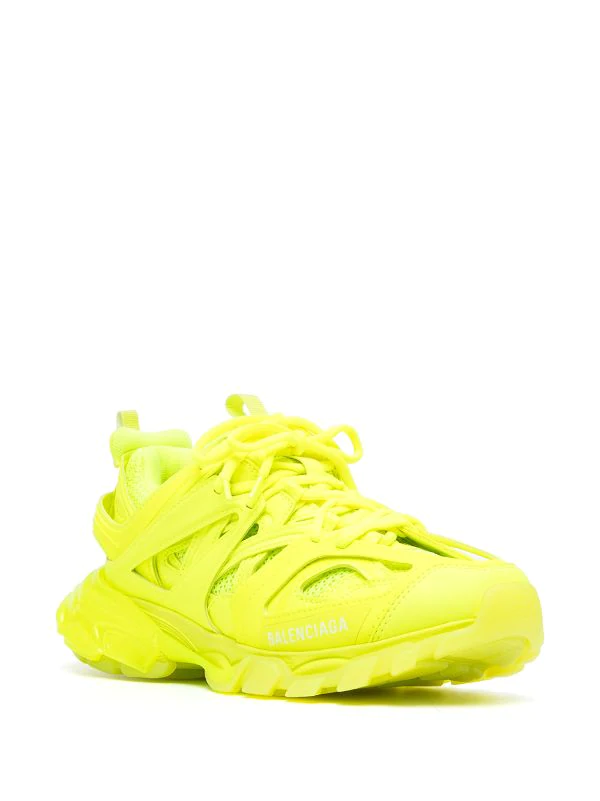 Détails superposés, bout rond, fermeture à lacer sur le devant, languette à patch logo, languette d’enfilage au talon, semelle plate en caoutchouc. Couleur : jaune. Matière : tissu.