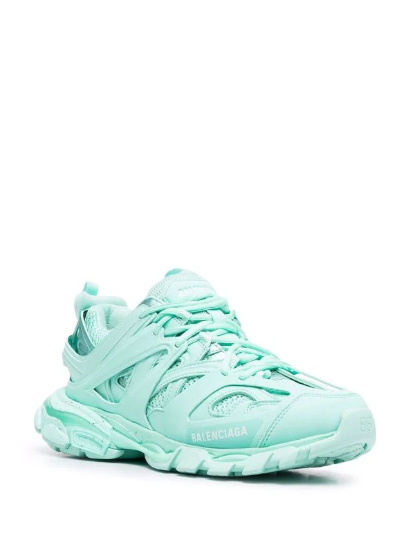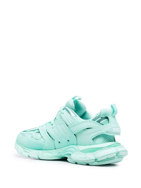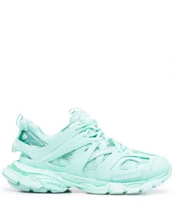 D’abord dévoilée pour la collection AW18 de Balenciaga, la baskets Track a rapidement acquis un prestige similaire à celui de la très populaire Triple S. Après plusieurs déclinaisons, cette version vert menthe se caractérise par une construction durable sans cuir et une semelle contemporaine en caoutchouc transparent.