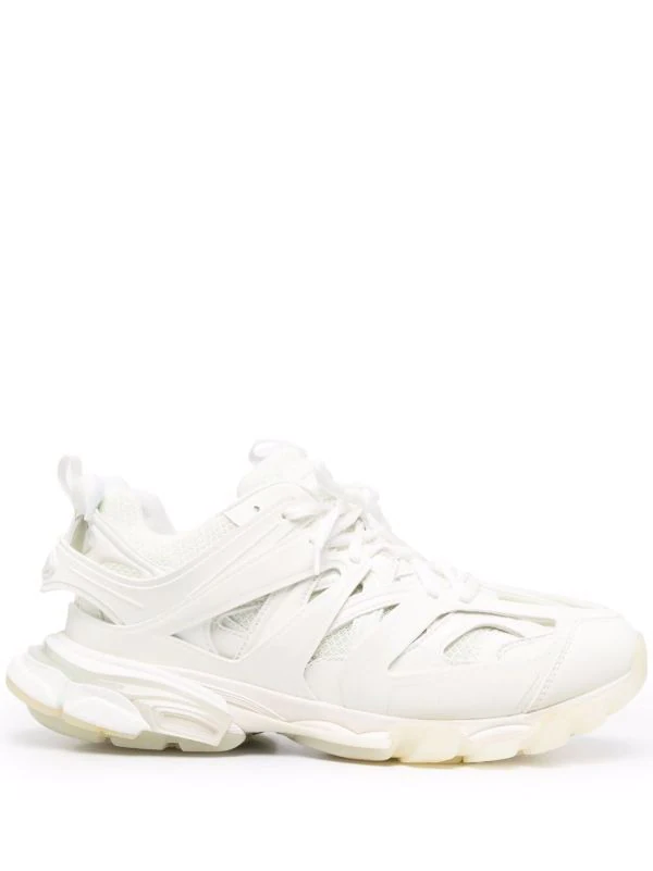 Design à empiècements, languette à logo imprimé, effet phosphorescent, fermeture à lacer sur le devant, bout rond, semelle épaisse en caoutchouc. Couleur : blanc.