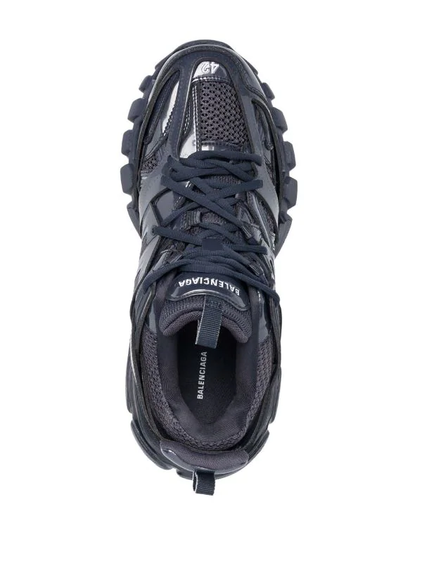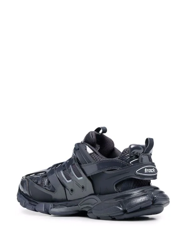 Inspirées des années 90 et 2000, ces baskets Track de Balenciaga sont fabriquées à partir de caoutchouc et de maille. Cette paire à lacets gris foncé présente une semelle en caoutchouc superposée, une référence nostalgique aux baskets rétro.