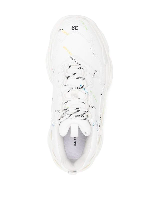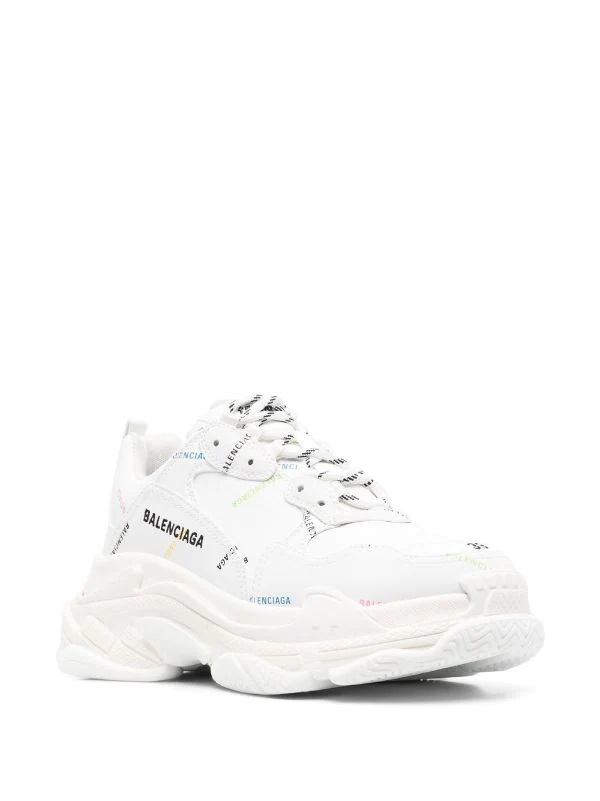 Blanc, cuir, imprimĂ© monogrammĂ©, imprimĂ© multicolore, design Ă empiĂšcements, fermeture Ă lacer sur le devant, languette d’enfilage au talon, semelle Ă©paisse en caoutchouc.