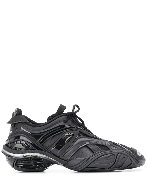 Baskets Tyrex Balenciaga avec bout carré, détail de laçage et languette arrière. Couleur : noir.