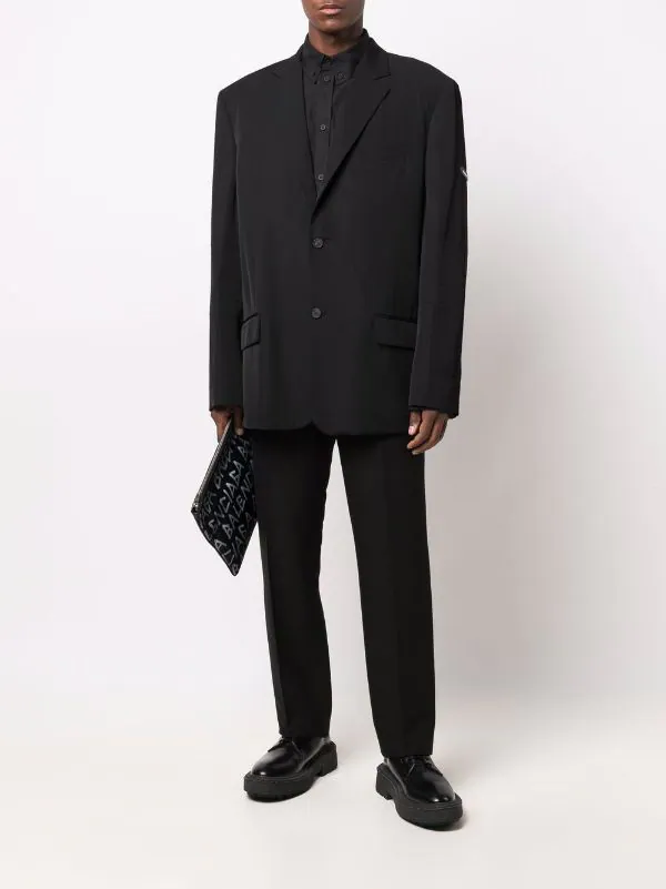 Patch logo sur la manche, revers crantés, poche passepoilée sur la poitrine, boutonnière sur le devant, poches latérales à rabat, doublure intégrale. Couleur : noir. Matière : coton.