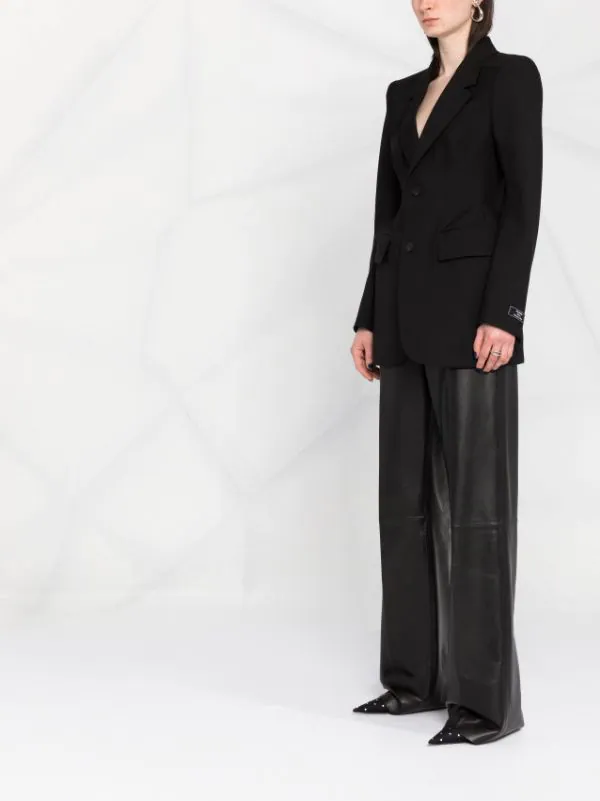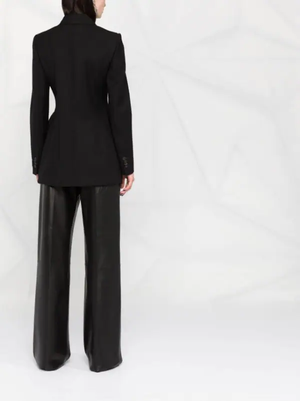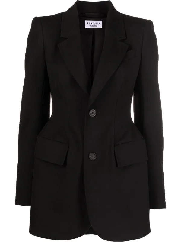 Revers crantés, boutonnière sur le devant, poche passepoilée sur la poitrine, poches devant à rabat, manches longues, poignets boutonnés. Couleur : noir.