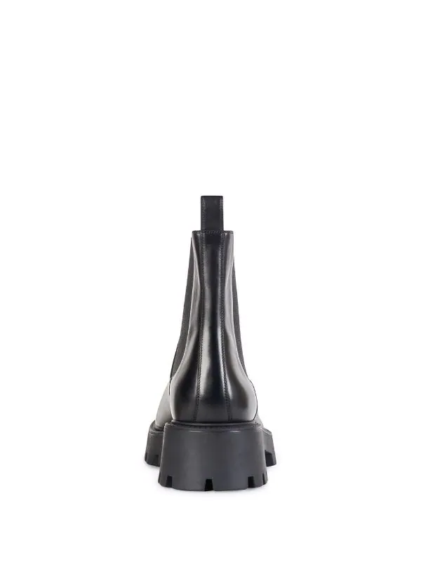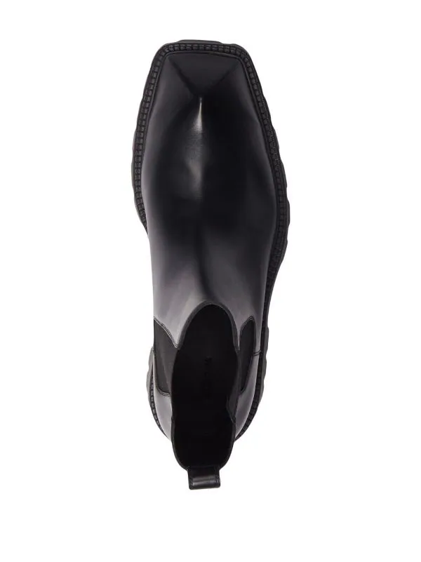 Bout carré, design à enfiler, empiècements élastiqués sur les côtés, languette d’enfilage au talon, semelle crantée en caoutchouc. Couleur : noir. Matière : cuir de veau.