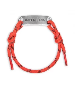 Plaque logo argentée, lacets contrastants, détail de nœud. Couleur : rouge. Matière : laiton.