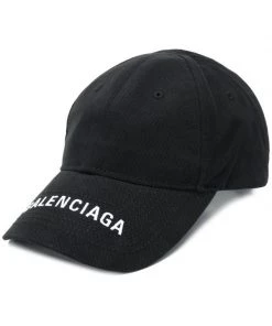 Casquette à Logo Brodé en coton Balenciaga avec visière incurvée et a touch strap fastening. Couleur : noir.