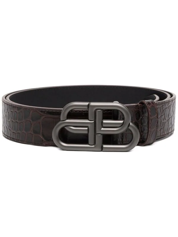 Effet peau de crocodile, fermeture à boucle logo, taille ajustable. Matière : cuir.