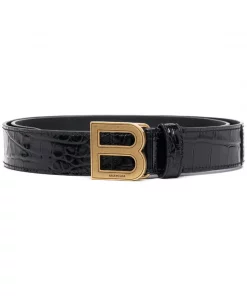 Plaque logo B signature, effet peau de crocodile, fermeture à boucle sur le devant, détails de perforation. Couleur : noir. Matière : cuir.