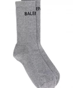 Chaussettes à logo imprimé Balenciaga avec coupe stretch, logo à l’extérieur et bordure nervurée. Couleur : gris. Les chaussettes et la bonneterie doivent être retournés dans leur emballage d’origine.