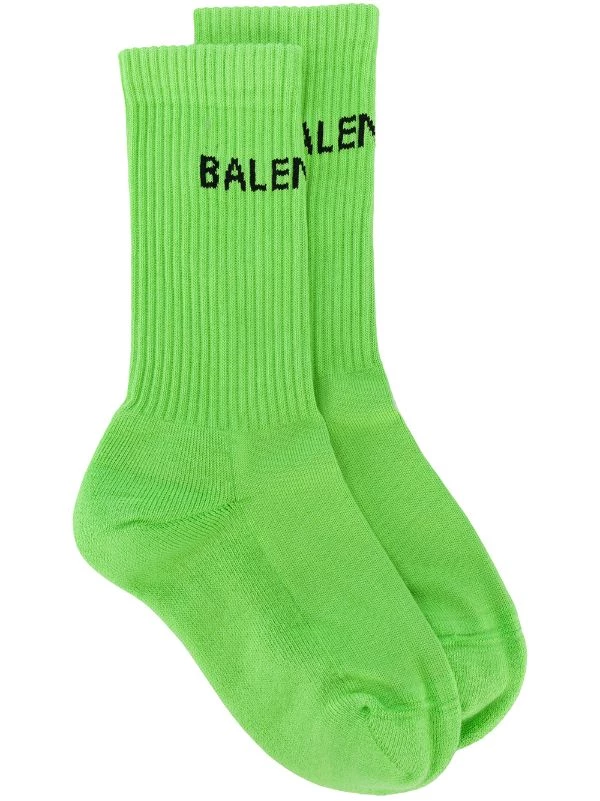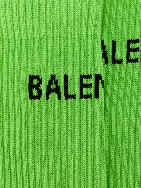 Chaussettes à logo intarsia en COTON MÉLANGÉ Balenciaga avec bout rond, design nervuré, coupe stretch et longueur mi-mollet. Couleur: Green and black. Les chaussettes et la bonneterie doivent être retournés dans leur emballage d’origine.