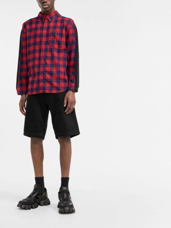 Imprimé à carreaux, design à empiècements, col boutonné, épaules tombantes, boutonnière sur le devant, manches longues, poche poitrine plaquée, ourlet droit. Matière : coton.