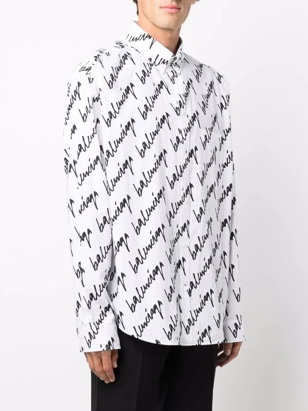 Imprimé monogrammé, col boutonné, boutonnière sur le devant, épaules tombantes, manches longues, poignets boutonnés, poche poitrine plaquée, ourlet incurvé. Matière : coton.
