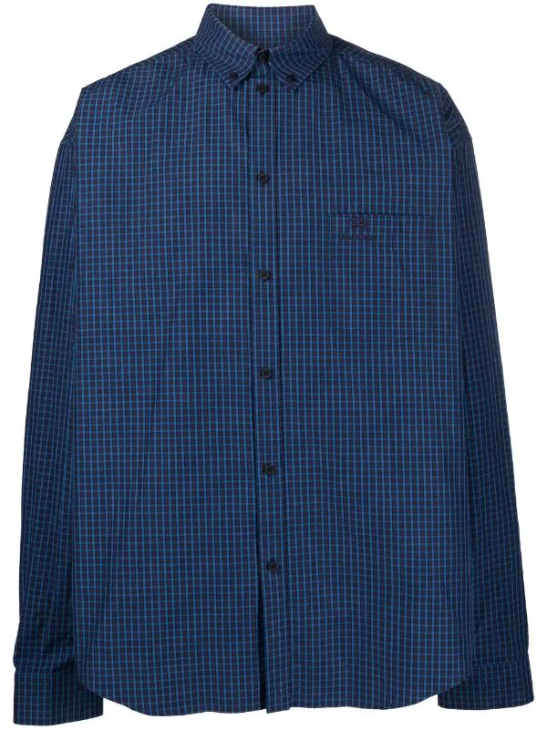 Carreaux, logo brodé sur la poitrine, col boutonné, boutonnière sur le devant, poche poitrine plaquée, manches longues, poignets boutonnés, ourlet incurvé. Couleur : bleu. Matière : coton.
