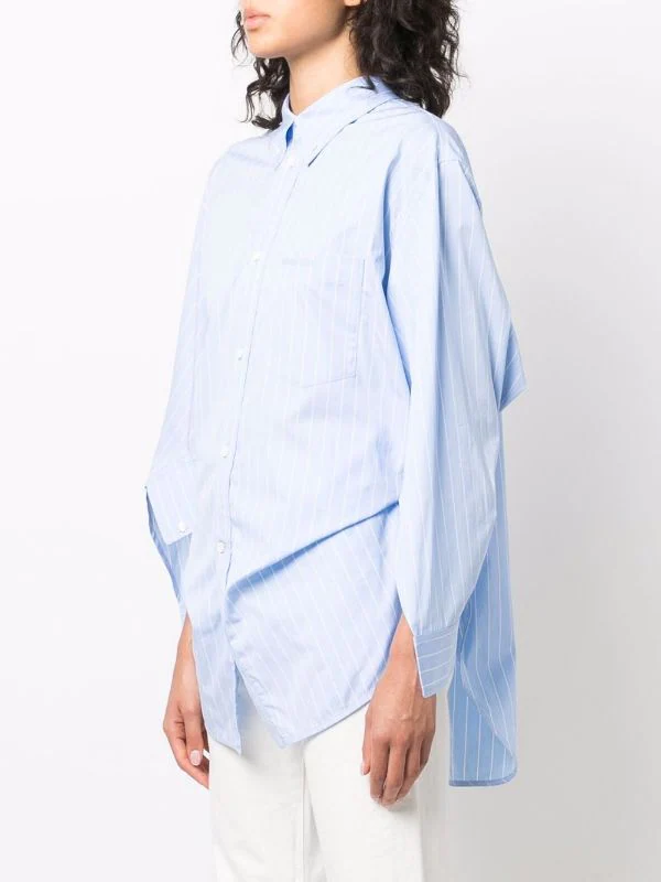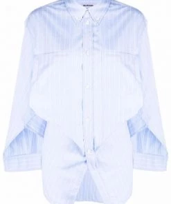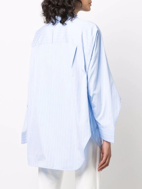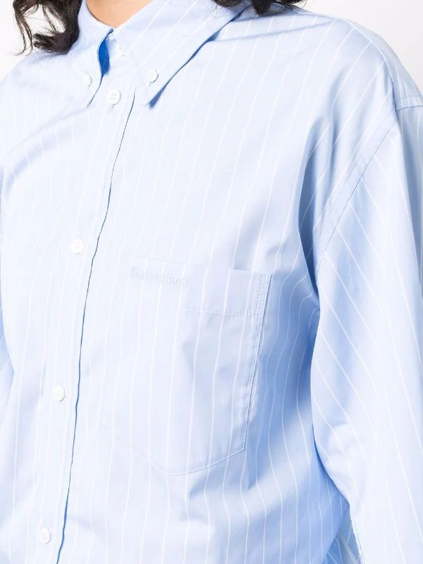 Fines rayures, manches chauve-souris, col classique, poche poitrine plaquée, ourlet incurvé, logo brodé, boutonnière sur le devant. Matière : coton.
