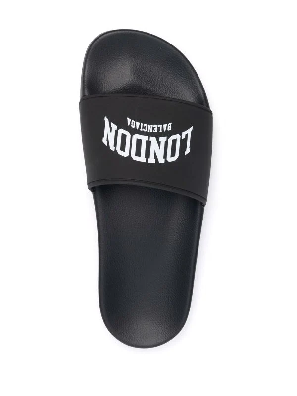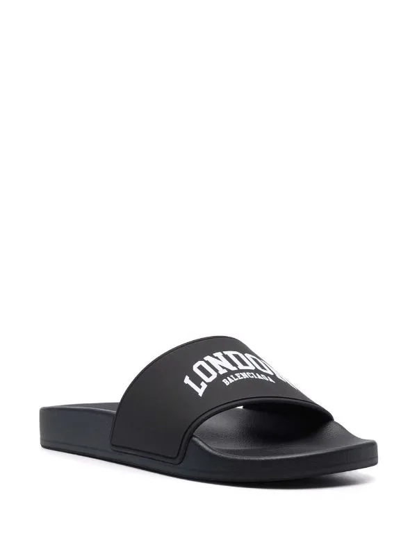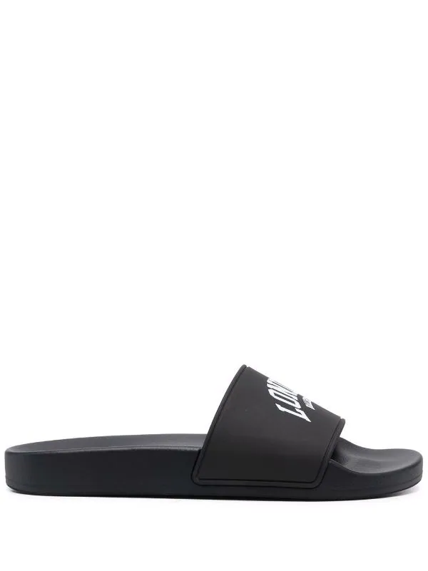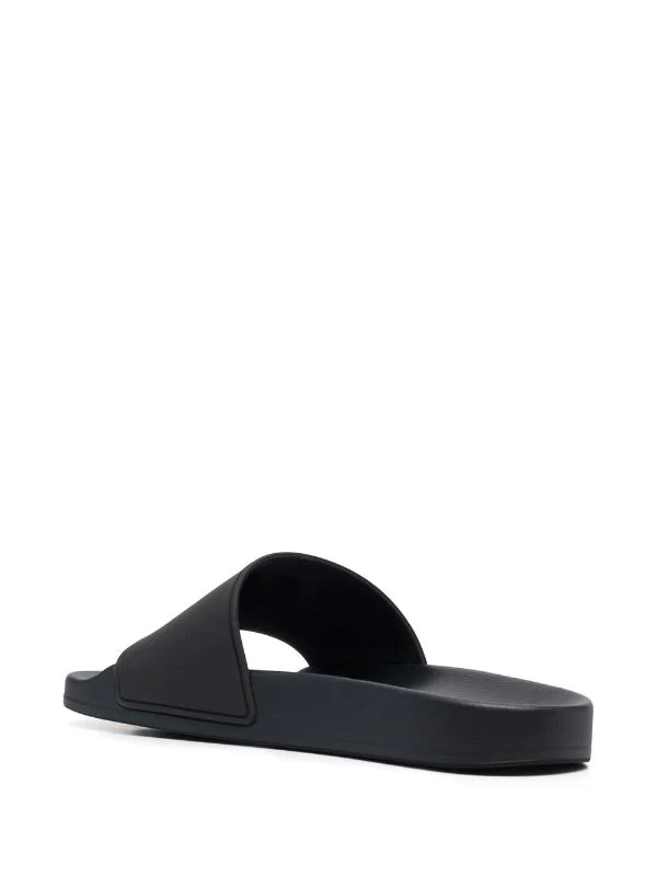 Logo imprimé sur le devant, bout ouvert, bout rond, design à enfiler, semelle plate en caoutchouc. Couleur : noir.