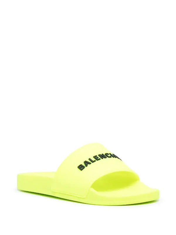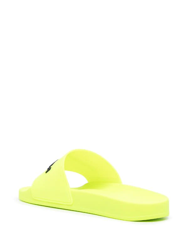 Logo lettre, détails de brides, bout ouvert, semelle intérieure anatomique, semelle plate en caoutchouc.