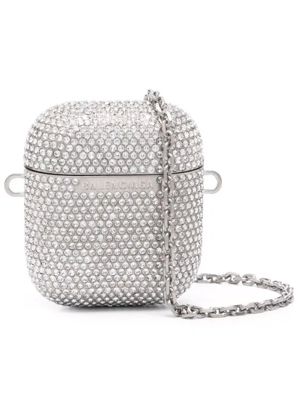 Ornement en cristal, logo gravé, rabat sur le dessus, bride porté épaule en chaîne. Matière : métal.