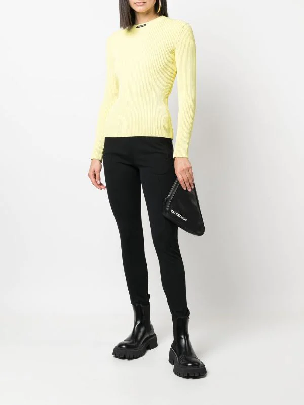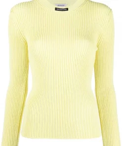 Design en maille, détail nervuré, patch logo sur le devant, encolure ronde, manches longues, ourlet droit.