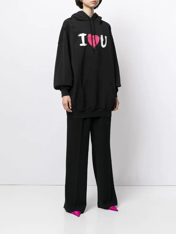Hoodie à imprimé graphique en coton Balenciaga avec imprimé graphique, capuche à lien de resserrage et manches longues. Couleur : Noir.
