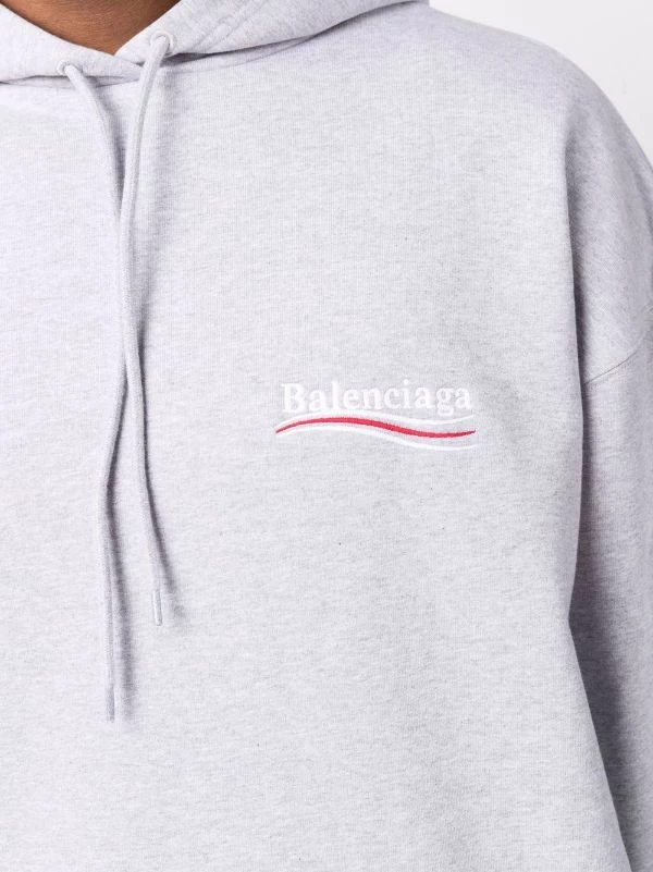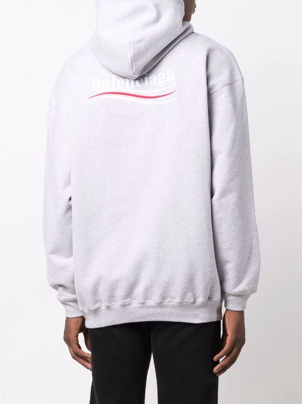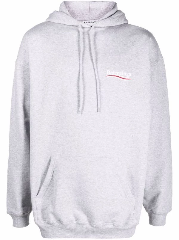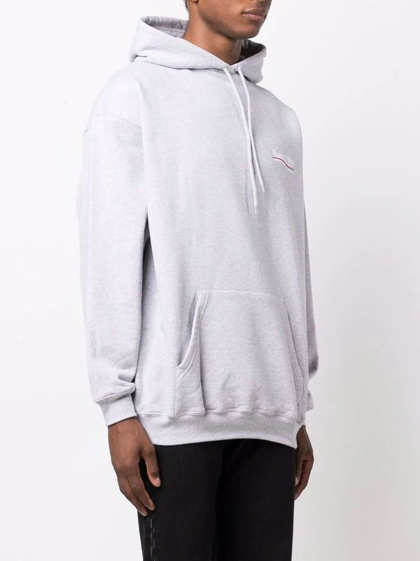 Logo imprimé à la poitrine, logo imprimé à l’arrière, capuche à lien de resserrage, finitions nervurées, poche plaquée sur le devant. Couleur : gris. Matière : coton.