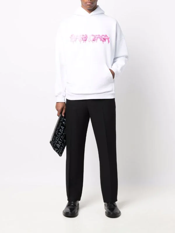 Logo imprimé sur le devant, capuche classique, manches longues, ourlet droit, poche plaquée sur le devant.