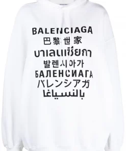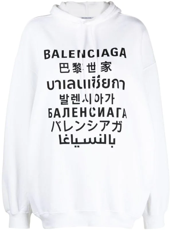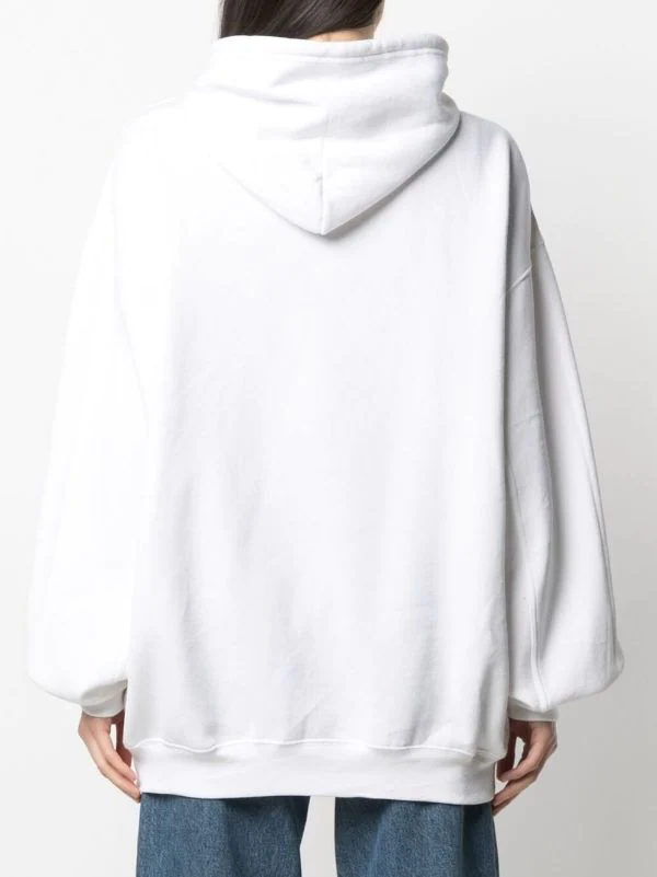 Capuche à lien de resserrage, effet d’épaules descendues, logo imprimé sur le devant, manches longues.