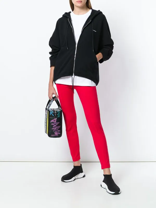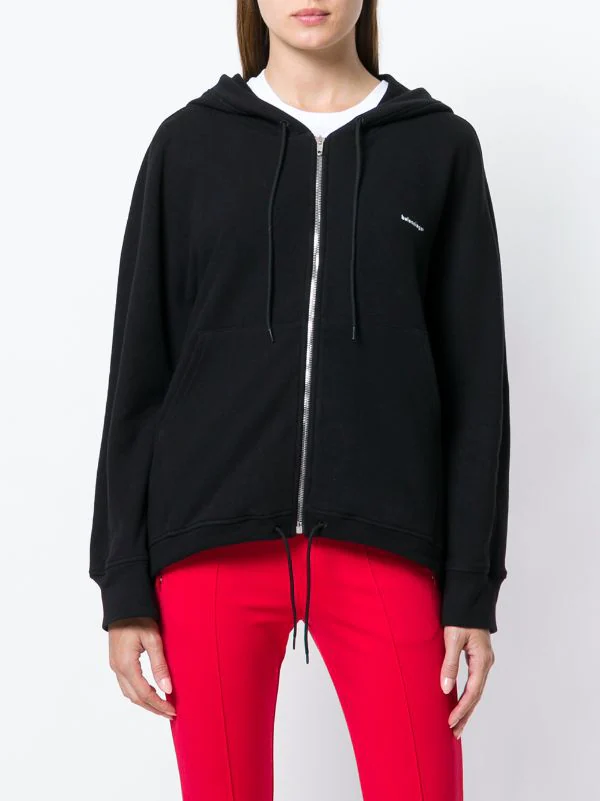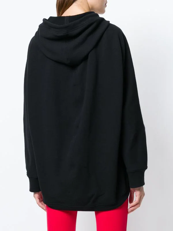 Capuche à lien de resserrage, fermeture zippée devant, poches kangourou, logo poitrine, manches longues, poignets nervurés, silhouette ample et un ourlet incurvé plus long au dos. Couleur: noir.