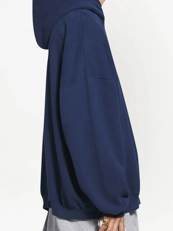 Capuche classique, manches longues, poche plaquée sur le devant. Matière : coton.
