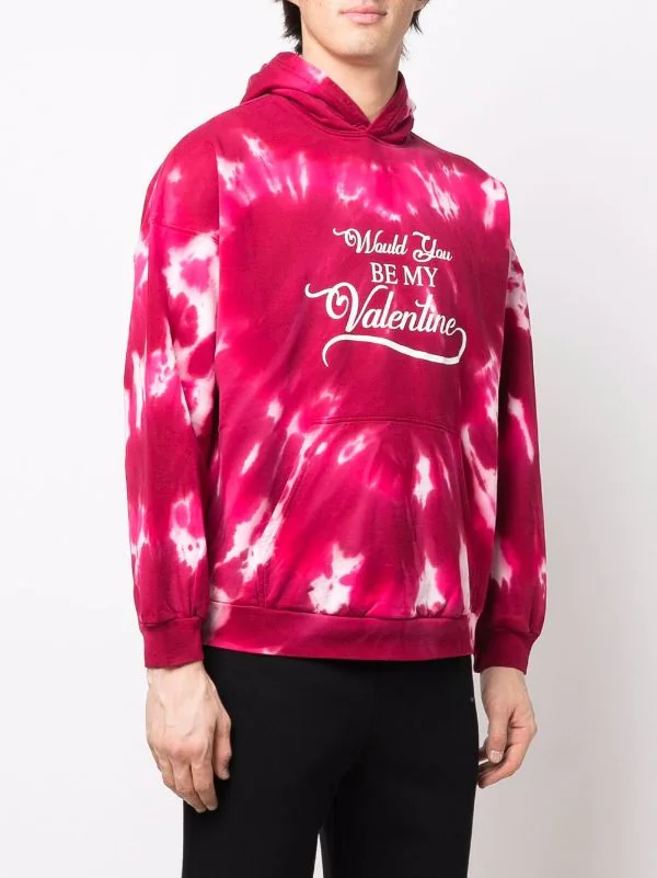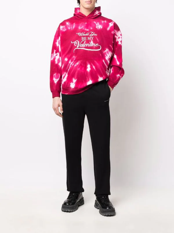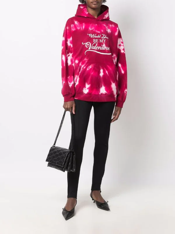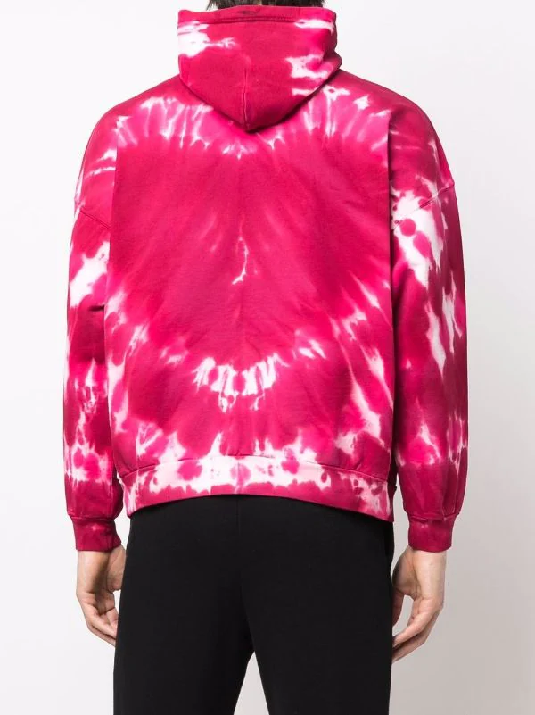 Motif tie dye, slogan imprimé sur l’avant, capuche classique, manches longues, poche plaquée sur le devant. Matière : coton.